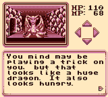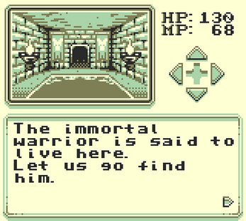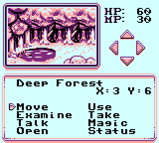 Player can press SELECT to bring up a map (it auto-updates as the player travels) and START to bring up the other options, including loading/saving a game.